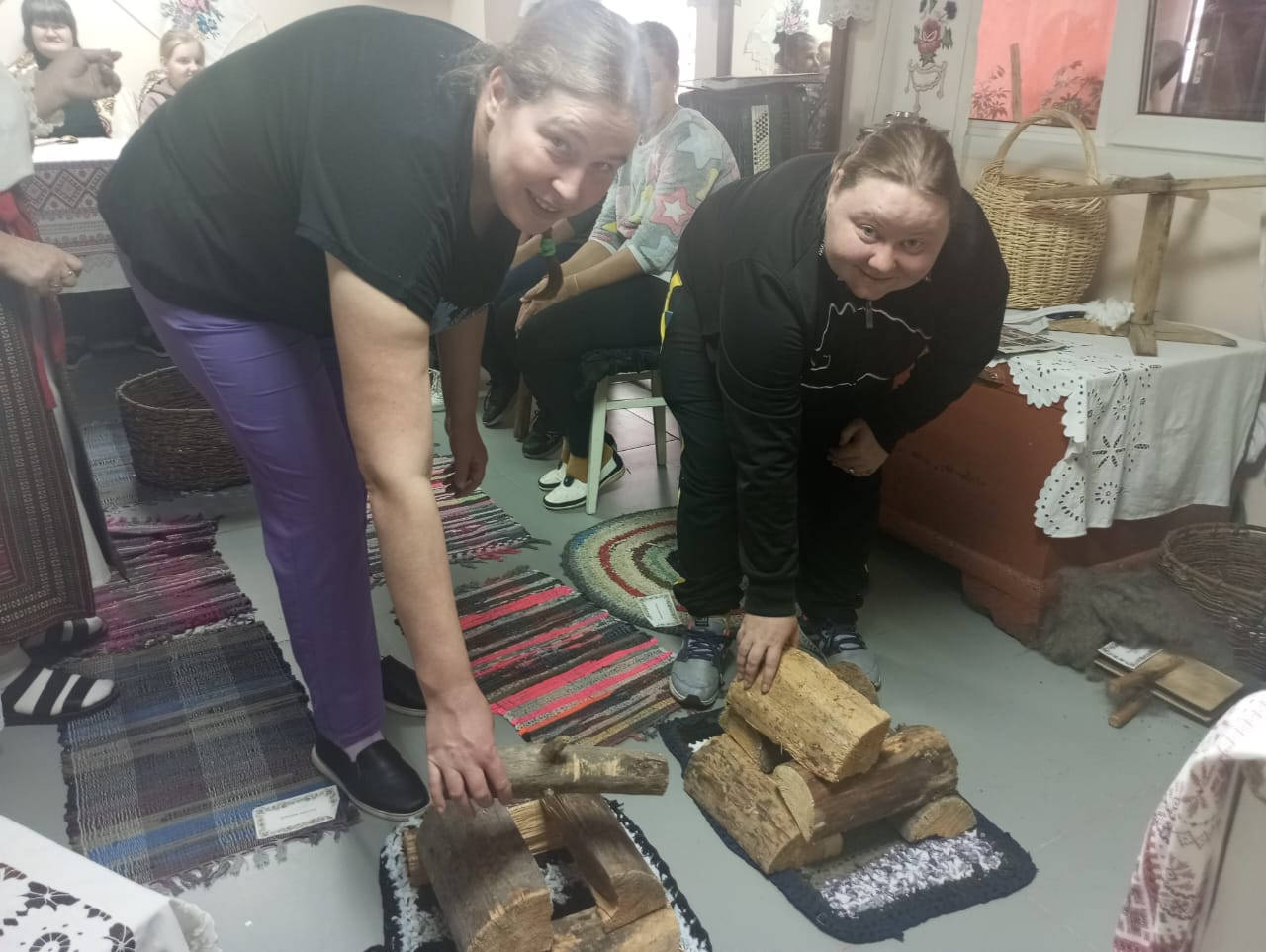 Далее началась самая увлекательная часть – игры и забавы! Девчата с азартом включились в народные игры, такие как "Первый снег", где ловко ловили воображаемые снежинки, а также соревновались в сноровке, играя в "Законопатить окно", "Сложи половинку" и "Вкусная картошечка". Смех и веселье не утихали, когда участницы пытались отгадать каверзные загадки и с юмором "чинили шубу". Не обошлось и без скороговорок, которые стали настоящим испытанием для языка!